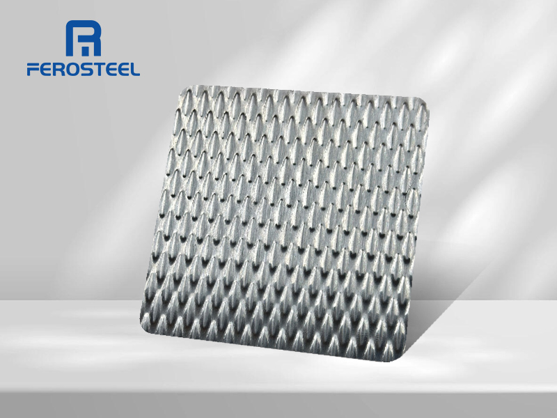 El estampado es un proceso de conformado de metales que utiliza una máquina de estampado para producir diseños en relieve o hundimiento sobre una lámina de acero inoxidable. La lámina pasa por un molde para producir un patrón de diseño regular en su superficie. Además, según el molde de rodillo utilizado, se pueden producir diferentes patrones en la superficie metálica.