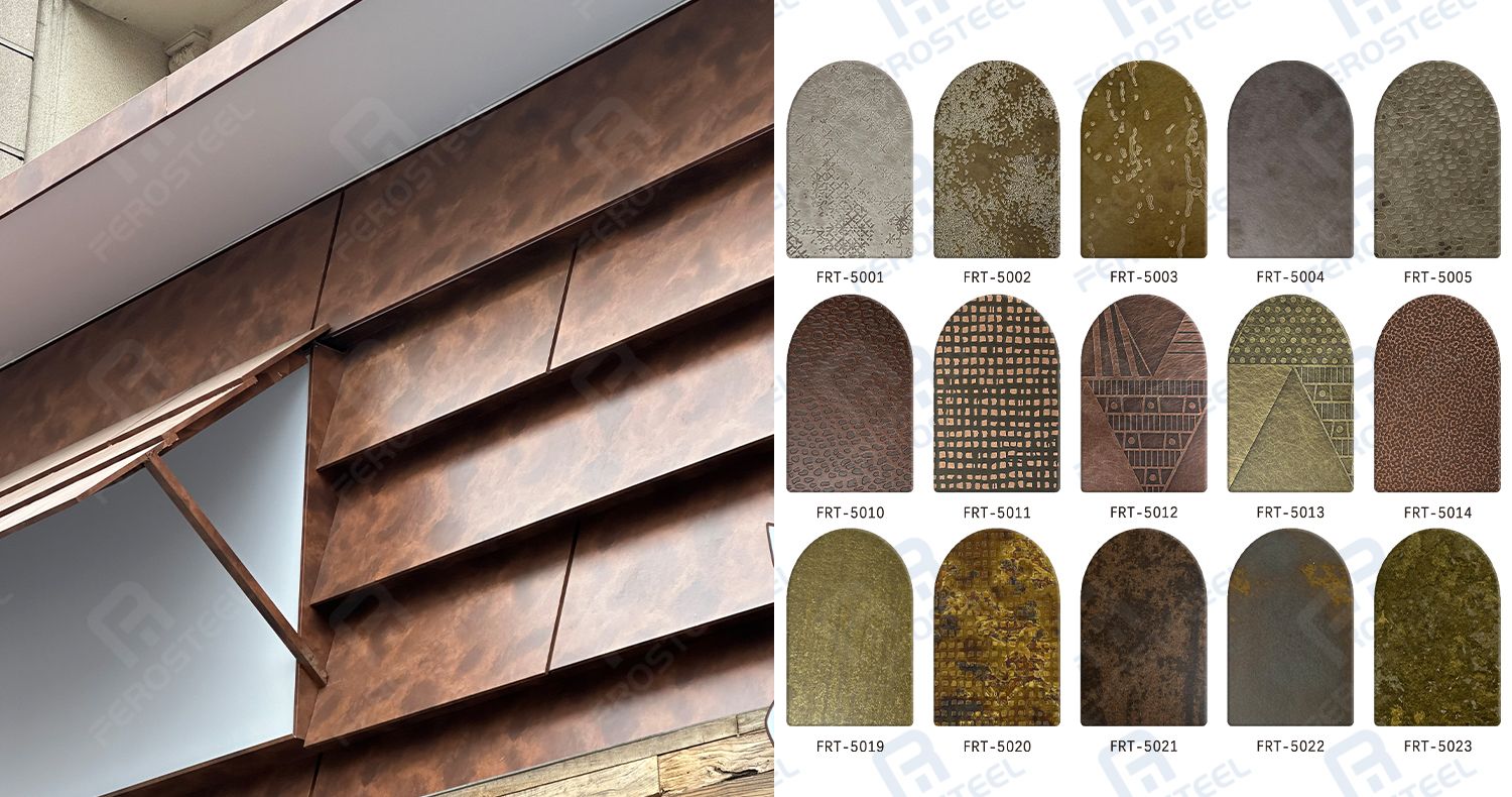 Las láminas de acero inoxidable de cobre antiguo combinan Aspecto elegante del cobre envejecido con la resistencia y durabilidad del acero inoxidable., lo que los convierte en uno de los materiales más populares en la decoración arquitectónica moderna.